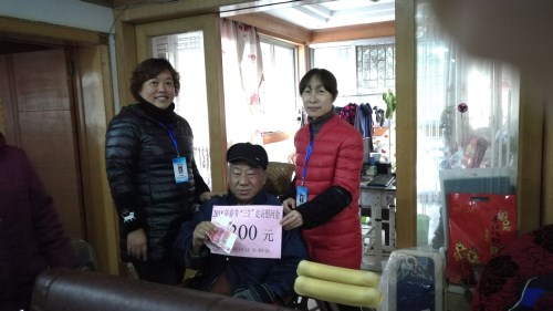 为进一步落实民生工程计划生育特殊家庭惠民政策,使特殊家庭感受到党和政府的关爱,2018年1月16日上午10时,东江街道朝阳社区计生协的工作人员走访慰问了朝阳社区“失独”家庭周援朝。周援朝双腿不便,而他的独子又在在2010年1月13日因高空意外去世。在走访慰问中,社区计生干部与周援朝进行了亲切交谈,了解他生活、健康、情感等方面的情况,聆听他的困难和诉求,帮助他解决生活上的困难,并送去慰问金。同时,社区干部还向他宣传了党和政府关爱特殊家庭的各种政策,鼓励他要坚强地面对生活,重拾对生活的信心和勇气。